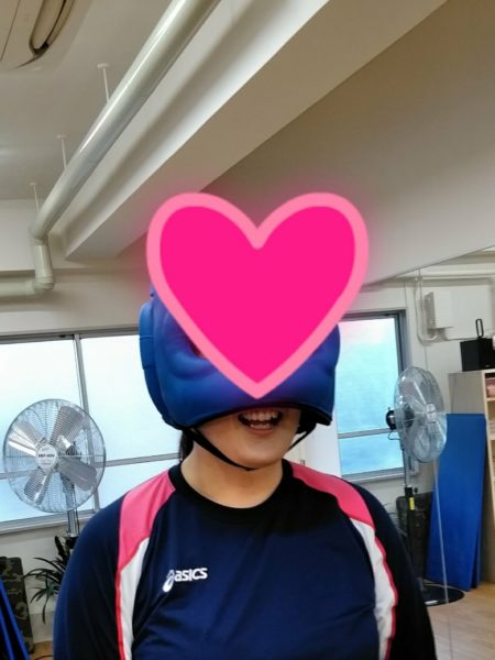 ヘッドギア付けると視界が狭くなるのが難点ですが、付けてもらうとなんとなく安心♪