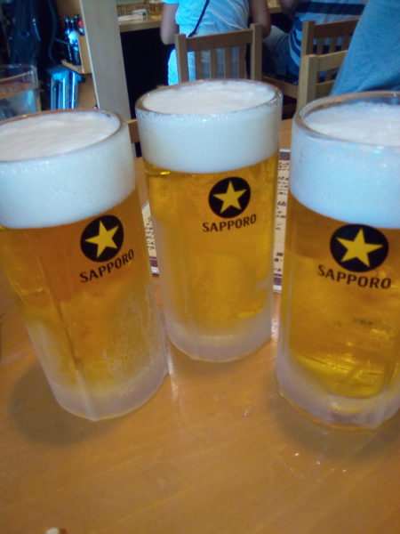 持ち込みの飲食は禁止なので、風で飛ばされそうなテントのなかで乾杯🍻