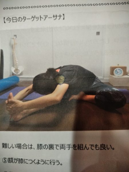 (頭を膝へ持っていくポーズ)
