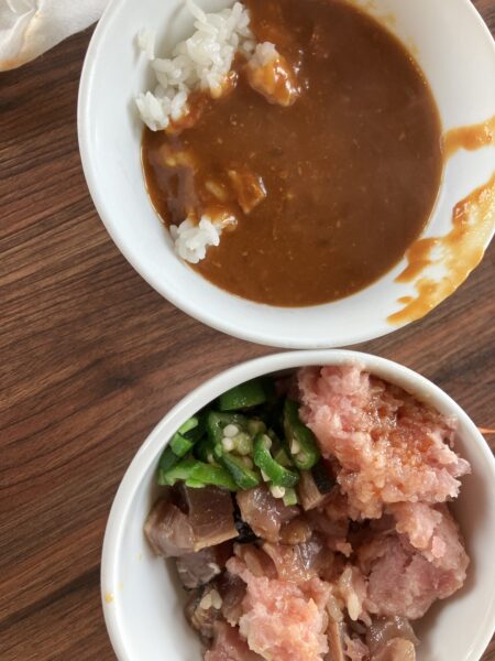 締めにはオリジナルに作れるポキ丼、カレー、フォーがあります。