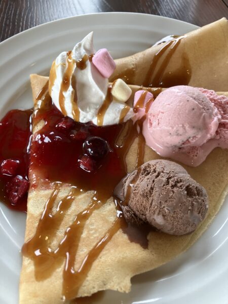 デザートは焼きたてクレープにアイス🍨