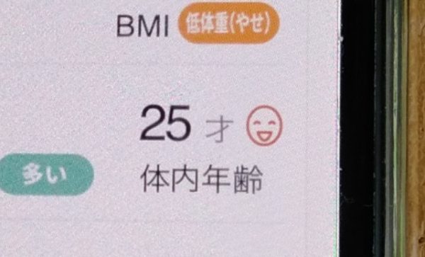 ※体内年齢 とは、体組成と基礎代謝量の年齢傾向から、どの年齢に近いかを表すもの