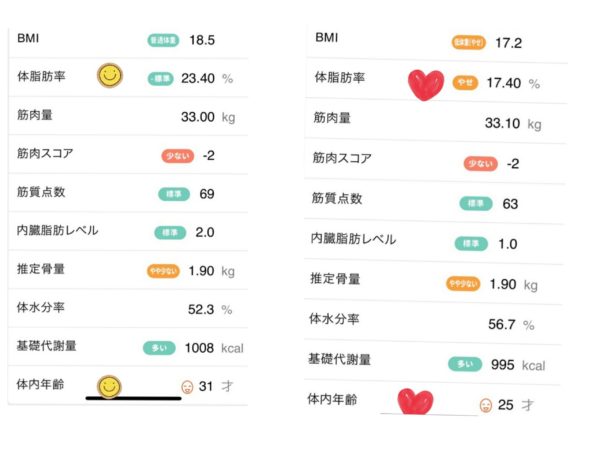 体重が変わってなくても、いつもの開脚ストレッチなどで体が柔らかくなってきたことと、腹筋が少し付いてきて嬉しくて逆にもっと付けたいなと(笑)