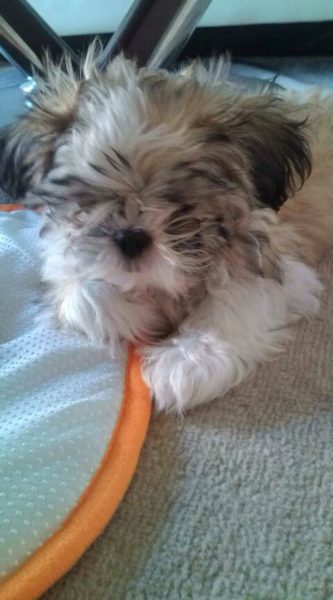 シーズーの子犬は、鼻の周りが菊の花のように毛が伸びて目が見えない😵