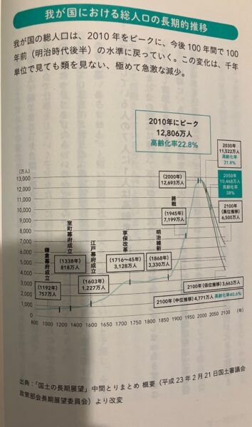 ところで、日本の人口は、今後100年間で1億2800万人から、2100年で3663万人まで急激に減少して、100年前の明治時代後半にまでなると予想されています。